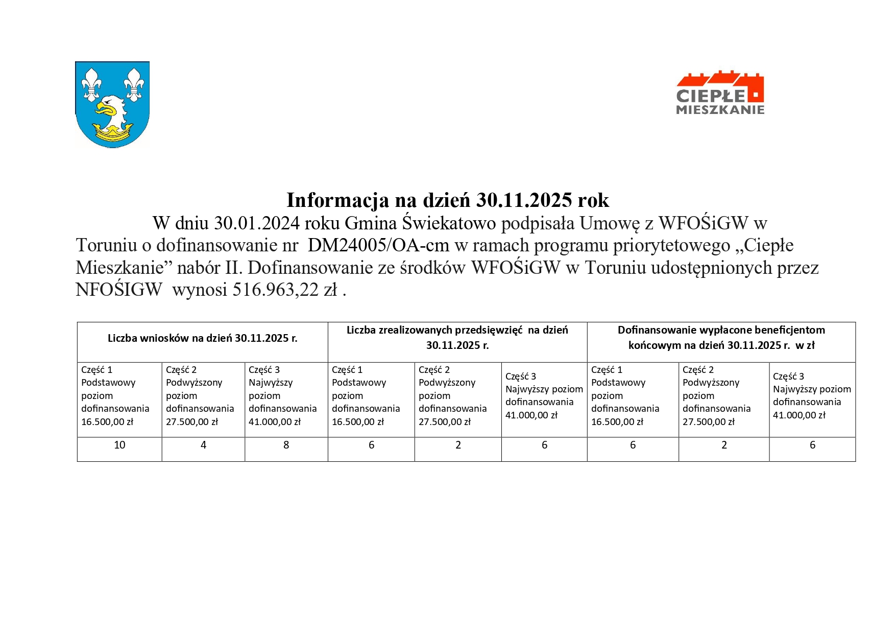Informacja o realizacji Programu Ciepłe Mieszkanie na dzień 30.11.2025 r.