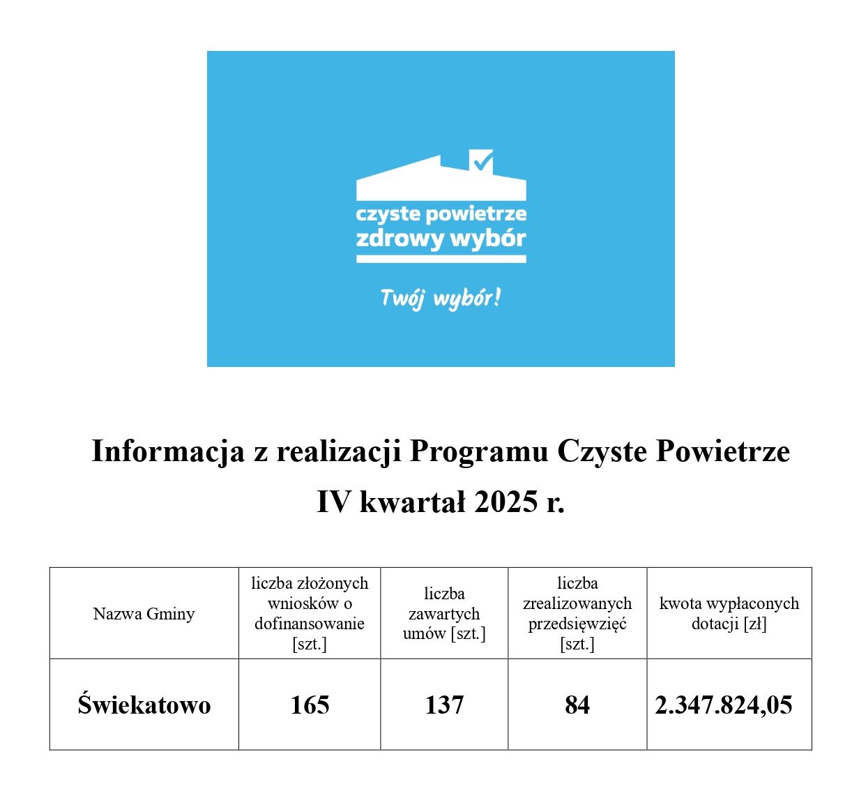 Informacja z realizacji Programu Priorytowego Czyste Powietrze IV kwartał 2025 r.