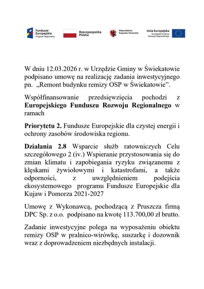 Remont budynku remizy Ochotniczej Straży Pożarnej w Świekatowie.